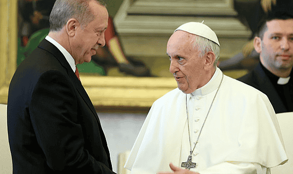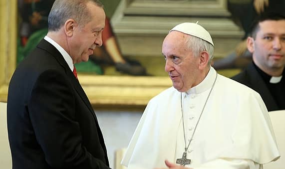 Cumhurbaşkanı Erdoğan, Katolik Hristiyanların Ruhani Lideri ve Vatikan Devlet Başkanı Papa Fransuva ile İsrail bir telefon görüşmesi gerçekleştirdi. İletşim Başkanlığı'ndan yapılan yazılı açıklama şöyle:"Görüşmede, İsrail ile Filistin arasındaki çatışmalar ve bölgede giderek ağırlaşan insan hakları ihlalleri ele alındı. Cumhurbaşkanımız Erdoğan görüşmede, İsrail'in Gazze'ye yönelik hiçbir kutsal metinde yeri olmayan saldırılarının katliam boyutuna ulaştığını, uluslararası toplumun yaşananları görmezden gelmesinin insanlık adına utanç verici olduğunu, tüm devletlerin bu insanlık dramına karşı ses yükseltmesi gerektiğini ifade etti. Cumhurbaşkanımız Erdoğan, ayrıca üç semavi dinin kutsal mekanlarını barındıran bölgede, kalıcı barışın ancak 1967 sınırlarında, başkenti Doğu Kudüs olan, bağımsız, egemen ve coğrafi bütünlüğe sahip bir Filistin Devleti'nin kurulması ile mümkün olacağını söyledi. Cumhurbaşkanımız Erdoğan, Türkiye'nin Gazze'ye insani ve tıbbi yardımların ulaştırılması için büyük çaba gösterdiğini, yardımların masum sivillere kesintisiz ulaştırılması konusunda herkesin bu çabalara aktif destek vermesi gerektiğini de belirtti."