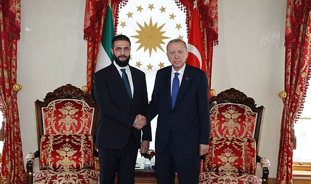 (İSTANBUL) - Cumhurbaşkanı Recep Tayyip Erdoğan, Suriye Cumhurbaşkanı Ahmed Şara ile Dolmabahçe Çalışma Ofisi'nde bir araya geldi. İletişim Başkanlığı'ndan yapılan açıklamada, "ABD ve AB'nin Suriye'ye yönelik yaptırımları kaldırma kararından sonra Türkiye'ye ilk ziyaretini gerçekleştiren Şara'ya Cumhurbaşkanımız, yaptırımların kaldırılmaya başlanmasının Türkiye tarafından memnuniyetle karşılandığını, Suriye'nin toprak bütünlüğünün korunarak ülkenin ve ordunun tek bir merkezden idare edilmesinin önemli olduğunu söyledi" denildi. Açıklamada, Şara'nın yaptırımların kaldırılmasındaki destek ve emekleri için Erdoğan'a teşekkürlerini sunduğu bildirildi.Cumhurbaşkanı Recep Tayyip Erdoğan, Cumhurbaşkanlığı Dolmabahçe Ofisi'nde Suriye Cumhurbaşkanı Ahmed Şara ile bir araya geldi. Görüşme 2 saatten fazla sürdü. Dışişleri Bakanı Hakan Fidan, Milli Savunma Bakanı Yaşar Güler, MİT Başkanı İbrahim Kalın, Savunma Sanayii Başkanı Haluk Görgün, Suriye Dışişleri Bakanı Esad Hasan Şeybani ve Suriye Savunma Bakanı Murhef Ebu Kasra'nın da yer aldığı görüşmeye ilişkin İletişim Başkanlığı açıklama yaptı. İletişim Başkanlığı'nın resmi sosyal medya hesabından görüşmeye ilişkin yapılan paylaşımda şunlar kaydedildi:"Cumhurbaşkanımız Sayın Recep Tayyip Erdoğan, Suriye Cumhurbaşkanı Ahmed Şara ile İstanbul'da Cumhurbaşkanlığı Dolmabahçe Çalışma Ofisi’nde bir görüşme gerçekleştirdi. Görüşmede Türkiye ile Suriye ikili ilişkileri, bölgesel ve küresel gelişmeler ele alındı.Cumhurbaşkanı Erdoğan görüşmede, Suriye'yi çok daha aydınlık ve huzurlu günlerin beklediğine inandığını, Türkiye'nin bugüne kadar olduğu gibi bundan sonra da Suriye'nin yanında durmaya devam edeceğini ifade etti.ABD ve AB'nin Suriye'ye yönelik yaptırımları kaldırma kararından sonra Türkiye'ye ilk ziyaretini gerçekleştiren Şara'ya Cumhurbaşkanımız, yaptırımların kaldırılmaya başlanmasının Türkiye tarafından memnuniyetle karşılandığını, Suriye'nin toprak bütünlüğünün korunarak ülkenin ve ordunun tek bir merkezden idare edilmesinin önemli olduğunu söyledi.Cumhurbaşkanı Erdoğan görüşmede, İsrail'in Suriye topraklarındaki işgal ve saldırganlığının kabul edilemeyeceğini, Türkiye'nin buna her platformda karşı çıkmaya devam edeceğini belirtti.Cumhurbaşkanımız, Türkiye ile Suriye ikili ilişkilerinin ve iş birliğinin enerji, savunma, ulaştırma başta olmak üzere her alanda gelişmeye devam edeceğini, Türkiye’nin bugüne kadar olduğu gibi bundan sonra da komşuluk ve kardeşlik hukukunun gereğini yerine getireceğini ifade etti.Görüşmede, Suriye Cumhurbaşkanı Şara, yaptırımların kaldırılmasındaki kritik destek ve emekleri için Cumhurbaşkanımıza teşekkürlerini sundu.Görüşmede, Cumhurbaşkanı Erdoğan’a Dışişleri Bakanı Hakan Fidan, Millî Savunma Bakanı Yaşar Güler, Milli İstihbarat Teşkilatı Başkanı İbrahim Kalın, Savunma Sanayii Başkanı Haluk Görgün, Cumhurbaşkanı Dış Politika ve Güvenlik Başdanışmanı Akif Çağatay Kılıç ve Cumhurbaşkanı Başdanışmanı Sefer Turan eşlik etti."