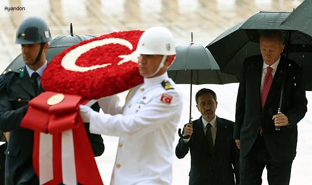Cumhurbaşkanı Recep Tayyip Erdoğan, TBMM Genel Kurulu’nda düzenlenen törenle yemin etmesinin ardından Anıtkabir’i ziyaret etti.Cumhurbaşkanı Recep Tayyip Erdoğan, TBMM Genel Kurulu’nda yemin etmesinin ardından Anıtkabir’i ziyaret etti. Yağmur yağışı altında Aslanlı Yol’da yürüyen Erdoğan’ın, Ulu Önder Mustafa Kemal Atatürk’ün mozolesine Türk bayrağı şeklinde, kırmızı ve beyaz çiçeklerden oluşan çelengi bıraktı. Daha sonra saygı duruşunda bulunuldu, İstiklal Maşı okundu. Erdoğan daha sonra Misak-ı Milli Kulesi’ne geçti ve Anıtkabir Özel Defteri’ne şunları yazdı:“Aziz Atatürk… Türkiye bir seçim sürecini daha tüm dünyaya örnek gösterilecek rekor bir katılımla ve demokrasi şöleni havasında, suhuletle neticelendirdi. 14 Mayıs’ta TBMM’de görev yapacak 28. Dönem milletvekillerini belirleyen milletimiz, 28 Mayıs’ta gerçekleştirilen Cumhurbaşkanı seçiminin ikinci turunda da şahsımıza yüzde 52,18 oy oranıyla yine büyük bir teveccüh gösterdi. Hamdolsun bir beş sene daha ülkemize ve necip milletimize hizmet edecek olmanın bahtiyarlığını yaşıyoruz.“CUMHURBAŞKANLIĞI HÜKÜMET SİSTEMİNİN DE GÜVENOYU ALDIĞI BU SEÇİMLERİN MİLLETİMİZİN ÖNÜNDE YENİ BİR DÖNEMİN KAPILARINI AÇTIĞINA İNANIYORUZ”Cumhurbaşkanlığı hükümet sisteminin de güvenoyu aldığı bu seçimlerin milletimizin önünde yeni bir dönemin kapılarını açtığına inanıyoruz. Önümüzdeki beş yıl boyunca, Türkiye yüzyılı vizyonumuzu hayata geçirmek için canla başla çalışmayı sürdüreceğiz. Asrın felaketi 6 Şubat depremlerinin yaralarını hızla sarıp söz verdiğimiz gibi depremzedelerimizi en kısa sürede yeni yuvalarına kavuşturacağız. 12. Cumhurbaşkanı olarak milletimizin ebedi ve ezeli kardeşliğine sahip çıkmaya, ülkemizi büyütmeye, devletimizi yüceltmeye devam edeceğiz. Rabbim yolumuzu ve bahtımızı açık etsin.”Erdoğan, Anıtkabir ziyaretinin ardından Cumhurbaşkanlığı’na hareket etti.