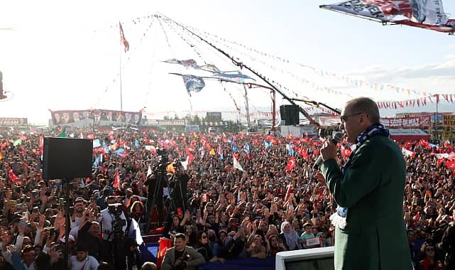 Cumhurbaşkanı Recep Tayyip Erdoğan, Erzurum’da; “Yüreği burkulmuş, hangi sebepten olursa olsun kalbi kırılmış kim varsa helallik isteyecek, mutlaka onların da gönlünü kazanacağız. 14 Mayıs seçimlerinin önemini anlatacak, bu kardeşiniz ve Cumhur İttifakı için desteğini talep edeceğiz.” dedi. Erdoğan ayrıca, “Tabii ‘Petrol bulduk’ deyince birileri hemen kalitesini soruyor. Ben de onlara diyorum ki, ‘Petrolümüz Erzurum dut pekmezi kıvamında.’ Nasıl? Bayılırım Erzurum’un dut pekmezine. Yani kalitesiyle en üst standartta” diye konuştu.Cumhurbaşkanı Recep Tayyip Erdoğan bugün Erzurum’da miting yaptı. Mitinge HÜDA PAR Genel Başkanı Zekeriya Yapıcıoğlu da katıldı. Erdoğan özetle şöyle konuştu:“MİLLETİ TEHDİT EDEN YABANCI DERGİLER DIŞINDA KİMSE KARALAR BAĞLAMAYACAK”“Biz Erzurum’u çok seviyoruz. Şu ihtişam sevilmez mi? 14 Mayıs akşamı balkondan sizlere sesleniyoruz.Erzurum bugün bir rekor kırdı. Şu anda yoldan, havalimanından buraya gelene kadar rakam 130 bin. 130 bin. Ben de sizlerle gurur duyuyorum. Rabbime hamdediyorum. Ya Rab, bana bu Dadaşları yoldaş ettin, sana hamdolsun.14 Mayıs günü sandıktan bir kez daha zaferle çıkacağız. Öyle bir zafer olacak ki Kandil’deki terör baronları dışında kimse kaybetmeyecek. Bu Kandil’deki terör baronlarını uzantısı olan malum HDP’yi artık Erzurum’da siliyor muyuz? Siliyor muyuz? Değerli kardeşlerim, Pensilvanya’daki hainler dışında kimse üzülmeyecek. Türkiye’ye kefen biçenler dışında kimse boynunu bükmeyecek. Kan ve kaos tüccarları dışında kimse feryat etmeyecek. İşte şimdi Van’dan geliyorum. Van’da da muhteşem bir katılım vardı. Siyaset mühendisleri dışında kimse başarısız olmayacak. Milleti tehdit eden yabancı dergiler dışında kimse karalar bağlamayacak.“14 MAYIS’TA AK PARTİ, CUMHUR İTTİFAKI KADAR, CHP’YE, İYİ PARTİ’YE, SAADET PARTİSİ’NE VE DİĞER YAVRUCUKLARA GÖNÜL VERMİŞ VATANDAŞLARIMIZ DA KAZANACAK”14 Mayıs’ta Erzurum kazanacak. 14 Mayıs’ta 81 vilayetiyle tüm Türkiye kazanacak. Genciyle, yaşlısıyla, kadını, erkeğiyle 85 milyonun tamamı kazanacak. Türkler kadar Kürtler de kazanacak. Sünniler kadar Aleviler de kazanacak. AK Parti, Cumhur İttifakı kadar, CHP’ye, İYİ Parti’ye, Saadet Partisi’ne ve diğer yavrucuklara gönül vermiş vatandaşlarımız da kazanacak. Sadece Türkiye ve 85 milyon Türk milleti sevinmeyecek. Gece yarısı bizim için ellerini semaya açan milyonlar sevinecek. Sadece Türkiye’de değil ha, yurt dışında da gözleri yaşlı elleri semada olan kardeşlerimiz de sevinecek. Seccadelerini gözyaşlarıyla ıslatan mahzun gönüller sevinecek. Seccadeye ayakkabılarıyla basanlar değil. Kıblesi Kâbe olanlar sevinecek.“YÜREĞİ BURKULMUŞ, HANGİ SEBEPTEN OLURSA OLSUN KALBİ KIRILMIŞ KİM VARSA HELALLİK İSTEYECEĞİZ”Önümüzdeki dokuz günü en güzel şekilde değerlendirmeye var mıyız? Hiçbir anımızı, hiçbir günümüzü boşa geçirmeyeceğiz. Değerli kardeşlerim kapı kapı dolaşacağız. Ulaşılmadık kimseyi bırakmayacağız. Yüreği burkulmuş, hangi sebepten olursa olsun kalbi kırılmış kim varsa helallik isteyecek, mutlaka onların da gönlünü kazanacağız. 14 Mayıs seçimlerinin önemini anlatacak, bu kardeşiniz ve Cumhur İttifakı için desteğini talep edeceğiz.Bizden önce 80 senede yapılamayanı biz 21 yıla sığdırmayı başardık. Şimdi önümüzde yeni bir dönem var. Bunun adı Türkiye Yüzyılı’dır. 21 yılda attığımız adımlarla bu idealimizin alt yapısını oluşturduk. Bizden önce ülkemizin yol sorunu, hastane sorunu, okul, üniversite, spor tesisi sorunları vardı. Çözdük. Bizden önce Türkiye’nin üretim sıkıntısı, dışa bağımlılık problemi vardı. Giderdik. Bizden önce turizm sadece belli mevsimlerde ve belli illerimizde yapılıyordu. Yaygınlaştırdık. Bizden önce ekonomisi IMF komiserlerince yönetilen güçsüz ve zayıf bir Türkiye gerçeği vardı. Tamamen değiştirdik.“ONLARA DİYORUM Kİ, ‘PETROLÜMÜZ ERZURUM DUT PEKMEZİ KIVAMINDA’”Karadeniz gazının yanı sıra, Gabar’da bulduğumuz petrol ile ülkemizin enerji kaynaklarını milletimizin istifadesine sunuyoruz. ‘Ortada gaz maz’ yok dedikleri Karadeniz doğal gazını ülkemize getirdik, vatandaşın emrine verdik. Bu gurur milletimizle paylaşmak için de doğal gazı bir ay ücretsiz yaptık. Bir yıl boyunca da her ay 25 metreküplük kullanımını faturanızdan düşüreceğiz. Artık Erzurum’un kışı siz kardeşlerimiz için biraz daha kolay geçecek. Tekrar, hayırlı uğurlu olsun diyorum. Günlük 100 bin varil üretim kapasitesine sahip Gabar petrolümüzü de milletimizle buluşturacağız. Tabii ‘Petrol bulduk deyince birileri hemen kalitesini soruyor. Ben de onlara diyorum ki, ‘Petrolümüz Erzurum dut pekmezi kıvamında.’ Nasıl? Bayılırım Erzurum’un dut pekmezine. Yani kalitesiyle en üst standartta. Doğal gaz ve petrol arama çalışmalarımıza hem karada hem denizde devam edeceğiz.“HINISLI KARDEŞİM BU İMANSIZLARA, BU KİTAPSIZLARA, BU EZANSIZLARA ARTIK ‘HAYDİ BURADAN’ DEMEYECEK Mİ?”CHP geçen hafta Erzurum’a gelmiş. Öyle mi? 250-300 kişi gelince güvenlik gerekçesi deyip mitingi iptal etmişler, öyle mi? İP gelmiş, sadece esnaf ziyareti yapmış, 300 kişi etrafında toplanmış. En son HDP bin 500 kişiyle Hınıs’ta miting yapmış. Ben şimdi buradan Hınıs’taki kardeşlerime de sesleniyorum. Bunlardan ne bekliyorsunuz? Benim Hınıslı kardeşim imanlıdır, inançlıdır, Hınıslı kardeşim bu imansızlara, bu kitapsızlara, bu ezansızlara artık ‘Haydi buradan’ demeyecek mi? Ya bu masanın etrafındakiler anlaşamıyorlar, her gün kavga ediyorlar. Ama iş birbirlerine makam, koltuk dağıtmaya gelince kimse bunların eline su dökemez. Şimdilik yedi cumhu