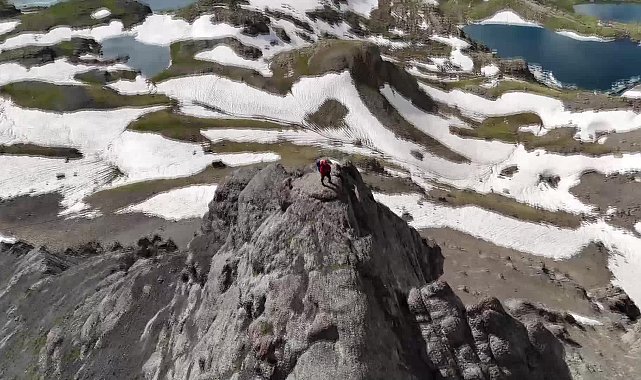 (ERZURUM)- Haziran ayının bitmesine günler kala karın beyazı ve doğanın yeşil tonlarıyla muhteşem bir görsel şölen oluşturan Erzurum'un İspir ilçesine bağlı Yedigöller bölgesi, doğaseverlerin uğrak mekanı oldu.İspir ilçesi sınırlarında, Kaçkar Dağları'nın güneybatısında ve Verçenik Dağları üzerinde yaklaşık 3 bin 200 metre rakımda yer alan Yedigöller, etkileyici güzelliğe sahip buzul göllerinden oluşuyor.Erzurum-Rize sınır hattında, Moryayla ve Yedigöl Mahalleleri civarında konumlanan bu eşsiz doğa harikası, bazıları küçük çaplı olmakla birlikte toplam 10 gölden meydana geliyor. Göllerin derinliği 10 ila 70 metre arasında değişirken bu göllerden ikisinde kırmızı benekli alabalık yaşıyor.Bölgeye adını veren Yedigöl; Kuzu, Koyun, Göbekli, Sinekli, Yıldızlı, Karanlık ve Aygır Gölü adları ile biliniyor. Bu göllerde biriken sular Yedigöl Deresi vasıtasıyla Salaçur Vadisi'ni geçerek Çoruh Nehri'ne ulaşıyor.Rakımı ve iklim şartları dikkate alındığında bölgeye yapılacak ziyaretler için en uygun dönemin 15 Haziran-15 Eylül tarihleri arası olduğu belirtilirken kış aylarında göllerin yüzeyi yaklaşık 1 metre kalınlığında buzla kaplanırken, bölgenin çevresi ise 2 ila 5 metre arasında değişen kar örtüsü altında kalıyor.Dağların oğlu ismiyle tanınan dağcı Bülent Erkan, fotoğraf tutkunlarını Yedigöller'de ağırladı. Haziran ayında bölgenin en güzel dönemini yaşadığını ifade eden Bülent Erkan, "Yedigöllerin uyanışı, yeşil beyaz iç içe. Kaçkar dağlarının güneyi, Yedigöllerin en güzel sezonunu yaşıyor. Doğaseverleri bu güzellikleri görmeye ve yaşamaya devam ediyorum" dedi.