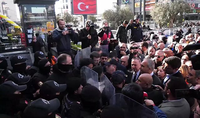 Haber: Oktay YILDIRIM/Kamera: Umut Emre GÖKBULUT(İSTANBUL)- Esenyurt Belediye Başkanı Ahmet Özer'in tutuklanıp yerine kayyum atanmasının ardından CHP'li seçilmiş meclis üyeleri bu sabah da belediyeye girerek görevlerini yapmak istedi. 28 belediye meclis üyesine CHP Genel Başkan Yardımcıları Gökan Zeybek, Suat Özçağdaş, Aylin Nazlıaka, ve Sevgi Kılıç, CHP İstanbul Milletvekili Ali Gökçek'in de aralarında bulunduğu CHP heyeti destek verdi. Meclis üyeleri içeri alınmayınca arbede yaşandı.31 Mart seçimlerinde seçmenlerin yüzde 49 oyunu alarak başkan seçilen Prof. Dr. Ahmet Özer geçen çarşamba gece yarısı tutuklanıp, yerine kayyum atanmıştı. Gözaltı, tutuklama ve kayyum atama işlemlerine karşı tepkiler devam ederken CHP Genel Başkan Yardımcıları Gökan Zeybek, Suat Özçağdaş, Aylin Nazlıaka ve Sevgi Kılıç, CHP İstanbul Milletvekili Ali Gökçek'in de aralarında bulunduğu CHP heyeti bu sabah Esenyurt Belediyesi önüne geldi.Zeybek, Özçağdaş ve diğer CHP yöneticileri, seçilmiş 28 belediye meclis üyesinin görevlerini yapabilmeleri için içeriye girmeleri gerektiğini belirterek barikatı geçmek istedi. Ancak görevliler kendilerine verilen emrin geçişe izin verilmemesi yönünde olduğunu belirtti. Bunun üzerine emrin yazılı mı sözlü mu olduğunu soran CHP heyeti, yazılı ise kendilerine emrin gösterilmesini istedi. Ancak görevliler ne emri gösterdi ne de geçişe izin verdi. Bu sırada arbede yaşanırken "Direne direne kazanacağız", "Faşizme karşı omuz omuza" sloganları atıldı.