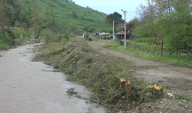 (DÜZCE) - Düzce'nin Akçakoca ilçesi Çay Deresi kenarında bulunan kayın, kavlan, çınar, kızılağaç cinsinden 1441 adet ağacın, dere ıslahı için kesilmesi kararının ardından bir yıla yakın durdurulan ağaç kesimlerinin yeniden başladığını söyleyen eski CHP İlçe Başkanı Tuğrul Abanoz, "Dere yatağını temizliyoruz diye burada önceden kırmızı boya ile işaretlenmiş 1441 ağaç maalesef talan edildi, yine birilerinin cebi doldu yine birileri buradan rant elde etti" dedi.