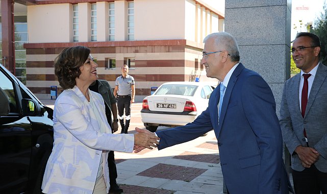(ESKİŞEHİR)- Eskişehir Büyükşehir Belediye Başkanı Ayşe Ünlüce, Eskişehir Osmangazi Üniversite (ESOGÜ) Rektörü Prof. Dr. Kamil Çolak ve Eskişehir Teknik Üniversitesi (ESTÜ) Rektörü Prof. Dr. Adnan Özcan’a nezaket ziyaretinde bulundu.Büyükşehir Belediye Başkanı Ayşe ünlüce, iadeiziyaretlerine devam ediyor. Bu kapsamda Ünlüce, Eskişehir Osmangazi Üniversitesi (ESOGÜ) Prof. Dr. Kamil Çolak ve Eskişehir Teknik Üniversitesi (ESTÜ) Rektörü Prof. Dr. Adnan Özcan’ı ziyaret etti. Başkan Ünlüce’ye ziyaretlerde Büyükşehir Belediyesi Genel Sekreter Yardımcısı Metin Bükülmez eşlik etti. Kentteki öğrenci nüfusunun yoğunluğundan bahsedilen ziyaretlerde, üniversiteler ve belediyeler arası iş birliği vurgusu yapıldı.Başkan Ünlüce, "On binlerce öğrenciye ev sahipliği yapan şehrimizde gençlerin hayatlarını kolaylaştırmak için üniversitelerimiz ile iş birliğine ve ortak akılla yürütülecek çalışmalara büyük önem veriyoruz. Sayın rektörlerimize hem misafirperverlikleri ve ilgileri için teşekkür ediyorum" ifadelerini kullandı.
