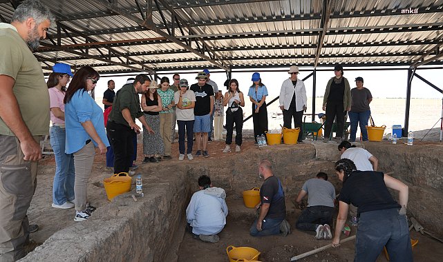 (ESKİŞEHİR)- Eskişehir Büyükşehir Belediyesi Gençlik Merkezi tarafından düzenlenen 'Küllüoba Kazı Deneyimi' etkinliğinde gönüllü gençler, 5 bin 200 yıl öncesine dair yaşamın izlerini taşıyan Küllüoba Höyüğü’ndeki kazı çalışmalarını ve buluntuları inceledi.Eskişehir Büyükşehir Belediyesi ve Halk Ekmek A.Ş.’nin desteklediği Küllüoba Höyüğü kazısı 28'inci yılında. Seyitgazi ilçesi'ne bağlı Yenikent Mahallesi'nin bin 300 metre güneyinde yer alan ve 5 bin 200 yıl öncesine ilişkin buluntulara ulaşılan kazı çalışmaları, devam ediyor. Büyükşehir Gençlik Merkezi, yapılan kazı çalışmalarını yerinde görmeleri için 'Küllüoba Kazı Deneyimi' etkinliği düzenledi. Gençler çalışmalarda, Bilecik Şeyh Edebali Üniversitesi Öğretim Üyesi Prof. Dr. Murat Türkteki ile kazı alanında bir araya geldi. Etkinlikte gençlere Büyükşehir Belediyesi Sosyal Hizmetler Dairesi Başkanı Hale Kargın ile Kültür ve Sosyal İşler Dairesi Başkanlığı Özden Yılmaz eşlik etti.Gençleri karşılayan Türkteki, Küllüoba Höyüğü’nde çalışmalara katılan ekibiyle birlikte ayrıntılar hakkında bilgilendirme yaptı. Türkteki, Küllüoba’daki kazılarda sosyal eşitsizlik ve çatışma, şehirleşme süreci, üretim ve tüketim süreçleri, kuraklıkla mücadele, bitkisel ilaçların kullanımına dair ilgi çekici sonuçların yer aldığını aktardı. Tüm zor koşullara karşın özveri ile çalışan kazı ekibini tanıyan gençler, kazı evinde dönem buluntularının nasıl işlemlerden geçtiğini görerek bütüne dönüştürülen eserleri de inceledi.