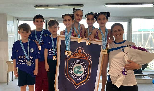 Eskişehir Büyükşehir Belediyesi (EBB) Gençlik ve Spor Kulübü’nün yüzücüleri, 12 yaş ve altı Artistik Yüzme Türkiye Şampiyonası’nda 8 altın ve 1 gümüş madalya kazandı. Yetiştirdiği başarılı sporcular ile ulusal ve uluslararası müsabakalarda Eskişehir’i temsil eden EBB Gençlik ve Spor Kulübü, yüzme branşında başarılı grafiğini yükseltmeye devam ediyor. Türkiye Yüzme Federasyonu tarafından düzenlenen 12 yaş ve altı Artistik Yüzme Türkiye Şampiyonası’nda Büyükşehir Gençlik ve Spor Kulübü’nün sporcuları, performanslarını 8 altın ve 1 gümüş madalya ile taçlandırdı. Büyük heyecana sahne olan yarışlarda, 7-8 yaş solo kategorisinde Mahmud Alp Çiçek birinci, 7-8 yaş mix düet kategorisinde Derin Şentürk, Mahmud Alp Çiçek ve Ceren Baloğlu birinci, 12 yaş takım kategorisinde Elif Duru Aksoylu, Derin Şentürk, Ada Yazıcı ve Ceren Baloğlu birinci, 7-8 yaş solo kategorisinde de Bora Saban ikinci olarak toplamda 8 altın ve 1 gümüş madalya kazanıldı.