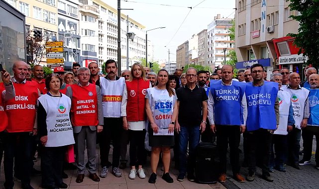 (ESKİŞEHİR) - Eskişehir'de sendikalardan oluşan 1 Mayıs Komitesi, vatandaşları mitinge davet etti. KESK Eskişehir Dönem Sözcüsü Umut Özge Yılmaz, "İktidar partisinin milletvekilleri ıstakoz yediği sofraları sosyal medya hesaplarından paylaşıp, yarım milyon değerinde saatler takarken; emekliler, emekçiler açlığa mahkum ediliyor" dedi.
