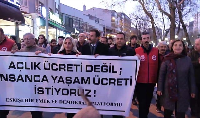 Eskişehir Emek ve Demokrasi Platformu, açıklanan asgari ücretin yetersiz olduğunu belirterek yürüyüş ve basın açıklaması düzenledi. Yürüyüş sonunda düzenlenen basın açıklamasında konuşan Gamze Toraman, "Bu yaşam koşullarında 17 bin 2 TL asgari ücret belirlemek için insafsız olmak gerekir. Bu asgari ücreti kabul etmiyoruz" dedi.