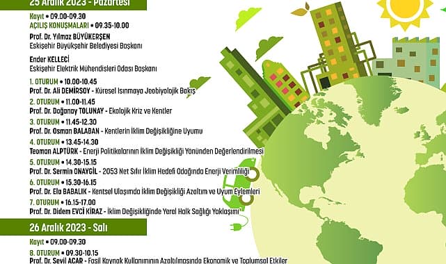 Eskişehir Büyükşehir Belediyesi ve TMMOB Elektrik Mühendisleri Odası Eskişehir Şubesinin paydaşlığında düzenlenen ve iklim değişikliğinin tüm yönleriyle ele alınacağı “Eskişehir İklim Zirvesi” 25-26 Aralık'ta yapılacak.