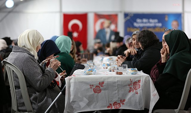 (İSTANBUL) - Eyüpsultan Belediyesi, Reşadiye Ortaokulu İftar Çadırı'nda “Bir Sofrada Bin Tebessüm” sloganıyla her gün bin kişilik iftar yemeği veriyor.Ramazan ayının maneviyatını Eyüpsultan’da yaşamak isteyen binlerce vatandaş, Eyüp Sultan Camii'ni ve Ebu Eyyüp el-Ensari’nin türbesini ziyaret ederken, Eyüpsultan Belediyesi de vatandaşları iftar sofralarında ağırlıyor. Eyüpsultan Reşadiye Ortaokulu İftar Çadırı’nda “Bir Sofrada Bin Tebessüm” sloganıyla her gün bin kişilik iftar yemeği veriliyor. Belediye Başkanı Mithat Bülent Özmen’in ev sahipliğinde düzenlenen iftar sofrasında binlerce vatandaş, komşuluk ve kardeşlik duyguları içerisinde hep birlikte iftar yapmanın mutluluğunu yaşıyor.