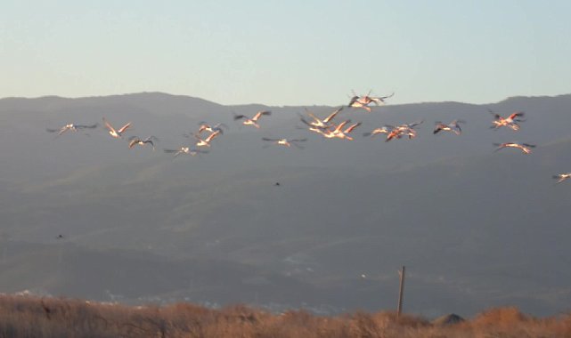 Ali Çetinkaya Mahallesi’nde Haberkent ve Dalyan çevresindeki sulak alanları mesken tutan flamingolar ilgi odağı haline geldi. Çevredeki sulak alanlarda sık sık görülen bir grup flamingo sürüsü, bölge sakinlerinin dikkatini çekiyor.Koruma altındaki sulak alanı mesken tutan flamingolar, kıyıya yaklaşık 50 metre mesafede, sığ alanlarda yiyecek arayışını soğuk havaya rağmen sürdürüyor. Renkli görüntülere sahne olan sulak alanda, flamingoların yanı sıra çeşitli su kuşları da yer alıyor.Emekli öğretmen Cihat Özdemir, “Burası flamingoların yaşam alanı. Diğer kuşların da yaşam alanı. Çok güzel bir yer” dedi. Sulak alanların azaldığını anlatan demir doğrama ustası Arif Durgun ise “Az bir sulak alan bıraktılar. Burada hayvanlara bir şey kalmadı. Her yer çöp gördüğünüz gibi” diye konuştu.Reklam