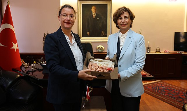 (ESKİŞEHİR)- Fransa’nın Ankara Büyükelçisi Isabelle Dumont ve beraberindeki heyet, Eskişehir Büyükşehir Belediye Başkanı Ayşe Ünlüce’yi ziyaret etti. İş birliği vurgusu yapılan ziyarette Büyükelçi Dumont,kentte hayata geçirilen ortak projeler için teşekkür etti.Eskişehir Büyükşehir Belediye Başkanı Ayşe Ünlüce, “Mıcro- Folie Eskişehir Dijital Müzesi ve Selçuk Demirel’in Yerle Gök Arasında” sergisinin açılışına katılmak için kente gelen Fransa’nın Ankara Büyükelçisi Isabelle Dumont, Kültür Etkinlikleri ve İşbirliği Müsteşarı ile Türkiye Fransız Kültür Merkezi Genel Müdürü Gilles Roulland, Institut Français d‘Ankara Müdürü Sophie Gauthier, Fransa Büyükelçiliği Siyasi Danışman Kilian Vivien, Fransa Büyükelçiliği Ekonomi Müsteşarı Orhan Chiali ve beraberindeki heyeti makamında ağırladı.Türk-Fransız diplomatik ilişkiler tarihinde ilk kadın büyükelçi olan Isabelle Dumont, kentin ilk kadın belediye başkanı olması dolayısıyla Ayşe Ünlüce’yi tebrik ederek, görevinde başarılar diledi. Büyükşehir Belediyesi’nin Fransız müzisyen, söz yazarı ve yorumcu Ysé Trio’nun, 17 Eylül’de Sazova Bilim Kültür ve Sanat Parkı’nda ağırlamalarından dolayı duyduğu memnuniyeti dile getirerek Başkan Ünlüce’ye teşekkür etti.Büyükelçi Isabelle Dumont, Eskişehir ile iş birliği yapmaya hazır olduklarının altını çizerek, önemli projelere imza atmak istediklerini söyledi.Büyükelçilik’in proje çağrısı ile bir araya gelen Büyükşehir Belediyesi Kadın Danışma ve Dayanışma Merkezi ile Mülteci Destek Derneği’nin (MUDEM) Kadın Hakları Projesi’nin kentte hayata geçmesinden dolayı çok mutlu olduğunu aktaran Büyükelçi Dumont, Başkan Ünlüce’ye projeye gösterdiği ilgiden dolayı teşekkür etti.Başkan Ünlüce de her türlü iş birliğine açık olduklarını vurgulayarak, “Eskişehir çok yönlü beslenen bir şehir. Bugüne kadar olduğu gibi Eskişehir her zaman dengeli kalkınma modeli ile kalkınacak bir şehir. Büyükşehir Belediyesi olarak şehrimizde hayata geçirdiğimiz her projede ve yatırımda sürdürülebilir olmasına önem verdik. Bu projelerimiz ilerleyen dönemlerde daha da büyüyerek ilerledi. Şehrimiz için her zaman en iyisini yapıyoruz” diye konuştu.Başkan Ünlüce, ziyaret için Büyükelçi Isabelle Dumont ve Fransız heyete teşekkür etti. Ziyaretin sonunda Başkan Ünlüce Büyükelçiye, şehirde ipek börekçiliğini geliştirmek için başlatılan ve el emeği ile dokunan ipek şal hediye ederken, Isabelle Dumont da Fransız Diplomatik Arşivleri kitabını Ünlüce’ye hediye etti.