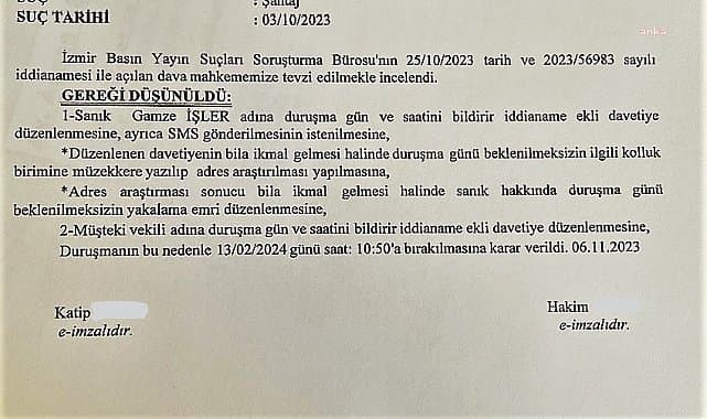 Gazeteci Gamze İşler hakkında, bir haberi ile ilgili “şantaj” iddiasıyla açılan soruşturma kapsamında İzmir Cumhuriyet Başsavcılığı tarafından hazırlanan iddianame, İzmir 10. Asliye Ceza Mahkemesi tarafından kabul edildi. İlk duruşma, 13 Şubat’ta yapılacak.İzmir Cumhuriyet Başsavcılığı’nın; Oda TV haber sitesinde, 21 Eylül 2023 tarihinde “Her yerden çıkıyor... 'Konsolostan' milyonluk vurgun” başlığıyla yayımlanan haber ile ilgili soruşturması tamamlanmış ve iddianame 25 Ekim 2023 tarihinde tamamlanarak İzmir Asliye Ceza Mahkemesi’ne gönderilmişti.Haberde, “İzmirli iş insanı İbrahim Dönertaş’ın adının milyonluk bir vurguna karıştığı” iddia edilmişti. Oda TV İzmir Haber Müdürü Gamze İşler’in haberin yayından kaldırılması karşılığında iş insanı İbrahim Dönertaş’tan para talep ettiği iddia edilmişti. İşler, iddianamede “şantaj” ile suçlanmıştı.İşler hakkındaki iddianame, İzmir 10. Asliye Ceza Mahkemesi tarafından 6 Kasım 2023’te kabul edildi. Mahkeme, ilk duruşmanın 13 Şubat 2024’te, saat 10.50’de yapılmasına karar verdi.