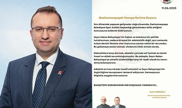 (İSTANBUL) - Gaziosmanpaşa Belediyesi Spor Kulübü Başkanı Selim Köroğlu, CHP’li Belediye Başkanı Hakan Bahçetepe’nin tutuklanmasına tepki göstererek görevinden istifa ettiğini duyurdu. Köroğlu, "Bahçetepe'nin haksız ve hukuksuz bir şekilde tutuklanması, sadece bireysel bir adaletsizlik değil, aynı zamanda hukuk devleti ilkesine olan inancımızı sarsan vahim bir durumdur" dedi.İBB'ye düzenlenen 5. dalga operasyonları kapsamında Gaziosmanpaşa Belediye Başkanı Hakan Bahçetepe'nin tutuklanmasına bir tepki de Gaziosmanpaşa Belediyesi Spor Kulübü Başkanı Selim Köroğlu'dan geldi. Yazılı bir açıklama yayımlayan Köroğlu, görevinden istifa ettiğini duyurdu. Köroğlu'nun açıklamasında şu ifadeler yer aldı: "Son dönemde yaşanan gelişmeler doğrultusunda, Gaziosmanpaşa Belediyesi Spor Kulübü Başkanlığı görevimden istifa ettiğimi kamuoyuna üzülerek bildiriyorum. Sayın Hakan Bahçetepe'nin haksız ve hukuksuz bir şekilde tutuklanması, sadece bireysel bir adaletsizlik değil, aynı zamanda hukuk devleti ilkesine olan inancımızı sarsan vahim bir durumdur. Bu gelişmeye sessiz kalmak, vicdanımı inkâr etmek olurdu. "Bahçetepe'nin özgürlüğüne kavuşmasını temenni ediyorum"Haksızlıklara karşı durmak, adaletin yanında saf tutmak en temel insani ve ahlaki sorumluluğumuzdur. Bu sebeple, Sayın Hakan Bahçetepe'ye yönelik adaletsizliğe karşı bir tepki olarak bu kararı almış bulunuyorum. Adaletin en kısa sürede tecelli etmesini ve Sayın Bahçetepe'nin özgürlüğüne kavuşmasını temenni ediyorum. Kamuoyunun bilgisine saygılarımla sunarım. Bahçetepe gururumdur, her koşulda yanındayız."