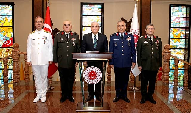 Milli Savunma Bakanı Yaşar Güler, yeni görevi dolayısıyla kendisini ziyaret eden Genelkurmay Başkanvekili ve Kara Kuvvetleri Komutanı Orgeneral Musa Avsever, Deniz Kuvvetleri Komutanı Oramiral Ercüment Tatlıoğlu, Hava Kuvvetleri Komutanı Orgeneral Atilla Gülan ve Genelkurmay İkinci Başkanı Orgeneral Selçuk Bayraktaroğlu’nu kabul etti.Genelkurmay Başkanvekili ve Kara Kuvvetleri Komutanı Orgeneral Musa Avsever, Deniz Kuvvetleri Komutanı Oramiral Ercüment Tatlıoğlu, Hava Kuvvetleri Komutanı Orgeneral Atilla Gülan ve Genelkurmay İkinci Başkanı Orgeneral Selçuk Bayraktaroğlu bugün, yeni görevi dolayısıyla Milli Savunma Bakanı Yaşar Güler'e ‘hayırlı olsun’ ziyaretinde bulundu. Milli Savunma Bakanlığı, ziyaretten tek kare fotoğrafı sosyal medyadan paylaştı.
