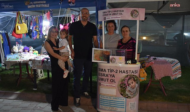 (AYDIN) - Germencik Belediye Başkanı Burak Zencirci, 21. Germencik İncir Festivali fuar alanında kurulan stantları ziyaret ederek, SMA hastası Esra Alkan ve Teoman Çiftçi ile aileleriye buluştu.Zencirci, 21. Germencik İncir Festivali kapsamında kurulan fuar alanındaki stantları ziyaret ederek esnaf ve vatandaşlarla buluştu. Zencirci, eşi Saliha Zencirci ve çocukları Özgür ve Piraye ile birlikte fuar alanına özel davet ettiği SMA hastası çocukların aileleri ve gönüllüleri tarafından açılan stantları da gezdi, festivale gelen misafirlerden destek talebinde bulundu.SMA hastası Esra Alkan ve Teoman Çiftçi’nin aileleri ve gönüllüleri Zencirci’ye teşekkür etti. Minik Esra’nın kendisi için yaptığı sulu boya resmi de satın alan Zencirci kampanyaya bağışta bulundu.“Çocuklarımızın sağlıklarına kavuşması en büyük dileğimiz”Destek çağrısı da yapan Zencirci, “21. Germencik İncir Festivali’mizde SMA hastası çocuklarımızın için kurulan stantlar bizim için en özel en önemli noktalar. Tüm vatandaşlarımızın, misafirlerimizin bu stantlara mutlaka uğramaları ve desteklerini göstermeleri bir insanlık görevidir. Miniklerimizin kısa sürede sağlıklarına kavuşmaları için umut biziz. Çocuklarımıza umut olalım” dedi.