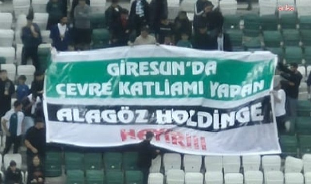 (GİRESUN) - Giresunspor taraftarları, Sebat Gençlikspor maçında Alagöz Maden’i protesto etti. Çevre tahribatına neden olduğu öne sürülen şirketle ilgili tribünlerde "Giresun’da çevre katliamı yapan Alagöz Holding'e hayır" pankartı açıldı. Giresunspor taraftarları, TFF 3. Lig 3. Grup'ta bugün oynanan Sebat Gençlikspor karşılaşmasında protestoda bulundu. Yeşil beyazlı taratftarlar seremoni sırasında açtıkları pankart ve attıkları sloganlarla Giresun’un Doğankent ilçesine bağlı Çatalağaç köyünde faaliyet gösteren Alagöz Maden Şirketi’ni protesto etti.Çotanak Stadyumu'nda taraftarların açtığı “Giresun’da Çevre Katliamı Yapan Alagöz Holdinge Hayır” yazılı pankart, son haftalarda bölgede yaşanan çevre felaketini yeniden gündeme taşıdı. Geçtiğimiz haftalarda şirketin atık depolama havuzunda meydana gelen taşma sonucu, çevreye kirli atık sızıntısı karıştığı, çevredeki dere yatakları ve tarım alanlarının olumsuz etkilendiği iddia edilmişti.Şirketin neden olduğu çevre tahribatları kamuoyunun sert tepkilerine neden olurken, Çevre, Şehircilik ve İklim Değişikliği Bakanlığı ekiplerince farklı zamanlarda yapılan incelemelerde şirket hakkında idari para cezaları uygulanmıştı.