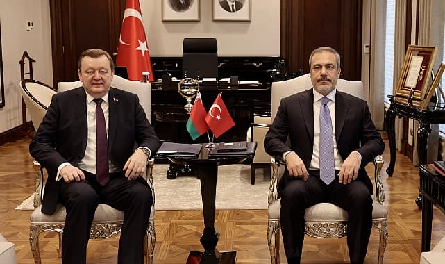 Dışişleri Bakanı Hakan Fidan, bugün Ankara'da Belarus Dışişleri Bakanı Sergei Aleinik ile görüştü. Fidan görüşmede, “Ukrayna’daki savaş, uluslararası hukuk temelinde sona ermeli. Taraflar arasında irade oluşursa Türkiye müzakerelere ev sahipliği yapmaya hazır” dedi. Gazze'deki gelişmelerin ele alındığı görüşmede İsrail’in şiddet yoluyla güvenlik tesis edemeyeceğini belirten Fidan, “Filistinlilere uygulanan zulüm ve şiddet karşısında sessiz kalınamaz” dedi.Dışişleri Bakanı Hakan Fidan, bugün Ankara'da Belarus Dışişleri Bakanı Sergei Aleinik ile bir araya geldi. İkili ilişkilerin yanı sıra bölgesel konuların da ele alındığı görüşmede Fidan, "Ukrayna’daki savaş, uluslararası hukuk temelinde sona ermeli. Taraflar arasında irade oluşursa Türkiye müzakerelere ev sahipliği yapmaya hazır” dedi.Fidan'ın Türkiye’nin Ukrayna’daki savaşın, uluslararası hukuk temelinde, barışla sonlanmasını arzu ettiğini belirttiği öğrenildi.Dışişleri yetkililerinden edinilen bilgiye göre görüşmede Gazze'deki insanlık trajedisi de ele alındı. İsrail’in şiddet yoluyla güvenlik tesis edemeyeceğini kaydeden Fidan’ın, “Filistinlilere uygulanan zulüm ve şiddet karşısında sessiz kalınamaz” dediği öğrenildi.Gazze’de uygulanan zulüm ve vahşet karşısında uluslararası toplumun sessiz kalmaması gerektiğini belirten Fidan, bir an önce tam ateşkes sağlanması, insani yardımların kesintisiz olarak ulaştırılmasının temini, kalıcı barış yönünde adımlar atılması için Türkiye’nin yoğun çaba harcadığını da anlattı.