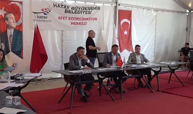 Hatay Büyükşehir Belediye (HBB) Meclisi, 2023 yılı mayıs ayı toplantısı EXPO alanında bulunan Afet Koordinasyon Merkezi’nde yapıldı.HBB Başkanvekili Fedai Yücedal yönetiminde yürütülen meclis toplantısında 68 gündem ve 1 ek olmak üzere toplam 69 madde görüşüldü. Toplantıda, Hatay Büyükşehir Belediyesi’nin Akdeniz’de yer alan belediyelerin oluşturduğu ‘Medcities’ organizasyonuna üyeliği meclis tarafından onaylandı. Toplantının devamında, Hatay Büyükşehir Belediyesi 2022 Mali Yılı Gelir-Gider Kesin Hesap Cetvellerinin görüşülmesi oy birliği ile kabul edilirken; depremlerin ardından oluşan artçılar sonucunda barınma ve ticari faaliyetlerin geçici olarak yürütülebileceği yer ihtiyacının karşılanabilmesi amacıyla 15 ilçe sınırları içerisinde yaptırılacak geçici yapılar ile ilgili yapım şartları kabul edildi.Bir sonraki HBB Meclis toplantısı, 8 Haziran Perşembe günü saat 14.00’te yapılacak.