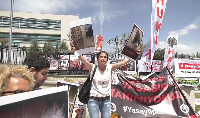 Toplanan kalabalık, “Yasayı iptal et hayvanları yaşat”, “Kadına, çocuğa, doğaya, hayvana dokunma” ve “Hayvana, insana, yeryüzüne özgürlük” dövizleri taşıdı, “Her yer AYM her yer direniş”, “Susma haykır katliama hayır” ve “AYM yasayı hemen iptal et” sloganları attı.