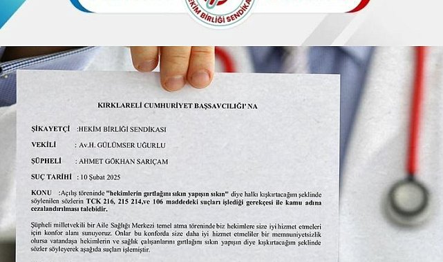 (ANKARA) - Hekim Birliği, Sağlık ve Sosyal Hizmet Çalışanları Sendikası, AK Parti Kırklareli Milletvekili Ahmet Gökhan Sarıçam hakkında "Gidin, sağlık personelinin gırtlağına yapışın. Ben devlet olarak üzerime düşeni yaptım, hizmeti vermeyen onlar' diye de kışkırtırım" ifadeleri sebebiyle Kırklareli Cumhuriyet Başsacılığı'na suç duyurusunda bulunduklarını bildirdi.Hekim Birliğinin X hesabından yapılan açıklamada, "Hekimlere yönelik şiddeti teşvik eden milletvekili hakkında suç duyurusunda bulunduk. Bir milletvekilinin halkı hekimlere ve sağlık çalışanlarına yönelik şiddete açıkça teşvik eden sözler söylemesi kabul edilemez. Kırklareli Pınarhisar 5 Hekimli Aile Sağlığı Merkezi ve İl Sağlık Hizmetleri İstasyonu binası açılış töreninde bir konuşma yapan milletvekili, hekimlerin ve sağlık çalışanlarının sunduğu hizmeti hedef alarak vatandaşlara 'Memnuniyetsizlik olursa hekimlerin gırtlağını sıkın, yapışın, sıkın' şeklinde ifadeler kullanmıştır. Bu sözler, halkı sağlık çalışanlarına karşı kışkırtmaya yönelik açık bir tehdit ve şiddet çağrısı içermektedir" denildi.Son 20 yılda görevi başında öldürülen sağlık çalışanlarına işaret edilen açıklamada, "Halkı kin ve düşmanlığa tahrik eden, sağlık çalışanlarına yönelik şiddeti teşvik eden ve tehdit içeren bu sözler karşısında hukuki süreç başlatılmıştır. Ülkemizde sağlık çalışanlarına yönelik şiddet son 20 yıldır azami boyuta ulaşmıştır. Dr. Göksel Kalaycı (2005), Dr. Ali Menekşe (2008), Dr. Ersin Arslan (2010), Dr. Kamil Furtun (2015) ve Dr. Fikret Hacıosman (2018), hasta ve hasta yakınları tarafından katledildi. Biz kayıplarımızın acısını dün gibi kalbimizde taşırken, sağlıkta şiddeti engellemek için çalışması gereken Türkiye Büyük Millet Meclisi’ndeki 600 vekilden bir tanesinin sağlıkta şiddeti kışkırtıcı sözlerini kabul etmiyoruz" ifadelerine yer verildi.