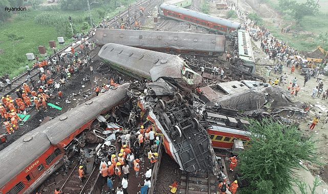 Hindistan’ın Odisha eyaletinde dün meydana gelen tren kazasında 261 kişi yaşamını yitirdi, bine yakın insan yaralandı. Dışişleri Bakanlığı’ndan bugün yapılan açıklamada, “Bu elim kazada yaşamlarını yitirenlerin yakınlarına, Hint halkına ve Hükümetine başsağlığı dileklerimizi iletiyor; yaralılara acil şifalar diliyoruz” denildi. Hindistan’ın Odisha eyaletinde dün bir tren kazası meydana geldi. Devlete ait Doordarshan News (DD News) kanalının haberine göre kazada 261 insan hayatını kaybetti.Dışişleri Bakanlığı’ndan kazaya ilişkin bugün yapılan açıklamada, “Hindistan’ın Odisha eyaletinde dün gece meydana gelen tren kazasında 300'e yakın kişinin hayatını kaybettiği ve 1000'e yakın kişinin yaralandığı derin bir üzüntüyle öğrenilmiştir. Bu elim kazada yaşamlarını yitirenlerin yakınlarına, Hint halkına ve Hükümetine başsağlığı dileklerimizi iletiyor; yaralılara acil şifalar diliyoruz” denildi.