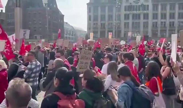 (ANKARA) - Hollanda’nın başkenti Amsterdam’da, İstanbul Büyükşehir Belediye (İBB) Başkanı Ekrem İmamoğlu’nun gözaltına alınması protesto edildi. Eylemciler, “Hükümet istifa” sloganı attı.İstanbul Büyükşehir Belediye Başkanı Ekrem İmamoğlu ve beraberinde çok sayıda kişinin 19 Mart Çarşamba günü gözaltına alınmasının ardından protesto gösterileri hem ülke içinde hem de ülke dışında sürüyor. Hollanda'nın başkenti Amsterdam'da çok sayıda kişi Dam Meydanı’nda bir araya gelerek protesto gösterileri düzenledi.Yüzlerci kişinin Türk bayrakları ve Atatürk posterleriyle katıldığı eylemde, “Hükümet istifa”, “Demokrasi nerede Tayyip”, “Diplomamı alına döneceğim iptal etmeyecekseniz eğer”, “Direniş her yerde Amsderdam’dan Taksim’e”, “Bi biskrem versem istifa eder misin Tayyip” dövizleri taşınırken, “Diktatör Erdoğan” sloganları atıldı.