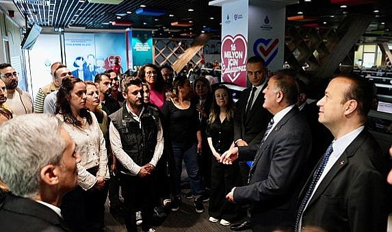 (İSTANBUL) İstanbul Büyükşehir Belediye (İBB) Başkan Vekili Nuri Aslan, düzenlenen 3. Dalga operasyon sonrası Halkla İlişkiler Dairesi çalışanlarını ziyaret etti. Ziyareti sosyal medya hesabından duyuran Aslan, ''Genel Sekreterimiz Volkan Demir ile Halkla İlişkiler Dairesi’nde görev yapan çalışma arkadaşlarımızı ziyaret ettik. Arkadaşlarımız görevlerinin başında İstanbul’a hizmet etmeye devam ediyorlar'' dedi.İBB Başkan Vekili Nuri Aslan ve Genel Sekreter Volkan Demir, İBB’nin Bahçelievler’de bulunan Halka İlişkiler Dairesi’ni ziyaret etti. 3. Dalga operasyonların ardından gerçekleşen ziyareti Aslan, sosyal medya hesabından duyurdu.Aslan, ''İstanbul'un seçilmiş Belediye Başkanı Ekrem İmamoğlu 2 aydır tutsak. İBB bürokratları tutsak. Bu sabah da çalışma arkadaşlarımız gözaltına alındı. Genel Sekreterimiz Volkan Demir ile Halkla İlişkiler Dairesi’nde görev yapan çalışma arkadaşlarımızı ziyaret ettik. Arkadaşlarımız görevlerinin başında İstanbul’a hizmet etmeye devam ediyorlar. İstanbul’un yanında; görevimizin başındayız'' dedi.