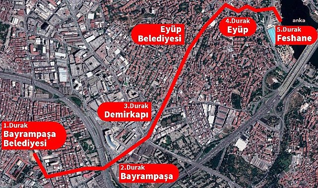 (İSTANBUL) - İstanbul Büyükşehir Belediyesi (İBB), Cumhurbaşkanlığı yatırım programına alınmayan Eyüpsultan-Bayrampaşa Tramvay Hattı’nı kendi öz kaynakları ile yapma kararı aldı. 2027’de tamamlanması planlanan projeye ilişkin açıklama yapan Bayrampaşa Belediye Başkanı Hasan Mutlu, “Halkımıza vaatlerimiz arasında yer alan Eyüpsultan-Bayrampaşa Tramvay Hattı projesinin hayata geçirilecek olmasından ilçemiz adına mutluluk duyuyoruz” dedi. İBB, Cumhurbaşkanlığı yatırım programına alınmayan Eyüpsultan-Bayrampaşa Tramvay Hattı’nı kendi öz kaynakları ile yapma kararı aldı.Yenikapı-Atatürk Havalimanı Metro Hattı, Yenikapı-Kirazlı Metro Hattı ve Haliç Tramvay Hattı ile entegre olacak 3.2 kilometre uzunluğundaki hattın 2027’de tamamlanması planlanıyor. Projeye ilişkin açıklama yapan Bayrampaşa Belediye Başkanı Hasan Mutlu, “Halkımıza vaatlerimiz arasında yer alan Eyüpsultan-Bayrampaşa Tramvay Hattı projesinin hayata geçirilecek olmasından ilçemiz adına mutluluk duyuyoruz. Büyükşehir Belediye Başkanımız Sayın İmamoğlu’na teşekkür ediyoruz” şeklinde konuştu. Eyüpsultan-Bayrampaşa Tramvay Hattı’nın Yenikapı-Atatürk Havalimanı Metro Hattı, Yenikapı-Kirazlı Metro Hattı ve Haliç Tramvay Hattı ile entegre olarak hizmet verecek.