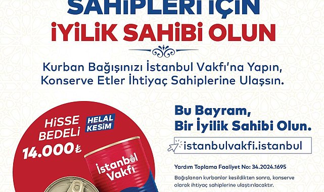 (İSTANBUL) - İBB İstanbul Vakfı’nın her yıl düzenlediği Kurban Bağışı Kampanyası başladı. Hijyenik ortamda İslami usullere göre kesilen kurbanlar, konserve yapılarak ihtiyaç sahiplerine ulaştırılıyor. İstanbul Valiliği’nin yardım toplama izni kapsamında başlatılan kampanyada kurban hisse bedeli bu yıl 14 bin TL oldu. Bağışlar istanbulvakfi.istanbul adresinden yapılabiliyor.İstanbul Büyükşehir Belediyesi'nden yapılan açıklamaya göre, İstanbul Vakfı aracılığıyla bu yıl da kurban bağışında bulunmak isteyen İstanbullularla ihtiyaç sahipleri bir araya getiriliyor. İstanbul Vakfı tarafından yürütülen ve takip edilen süreçte, bayramın 1. günü vekaleti alınan bağışçıların kurban kesim işlemine başlanıyor. Kesimler bayramın 3. günü akşamında sona eriyor.Kesimler, her yıl olduğu gibi TSE onaylı helal kesim belgesine sahip firma tarafından gerçekleştirilecek. Kurban kesim işleminden sonraki 1 hafta içerisinde kurban etleri konserve haline getirilecek. 18 ay kullanma süresi olan konservelerin dağıtımı, İBB Sosyal Hizmetler Dairesi Başkanlığı tarafından yapılacak. Bütün kesimler yine her yıl olduğu gibi noter gözetiminde, veteriner denetiminden geçirilerek, din görevlisi eşliğinde bağışçıların her birinin adının okunması suretiyle kamera kaydına alınarak gerçekleşecek.4 yılda 800 bin aileye ulaşıldıİstanbul Vakfı ilgili sayfasında, her yapılan bağışın miktarı ve bağışçı sayısı şeffaf şekilde yayımlanacak. Bağışlar istanbulvakfi.istanbul adresinden yapılabilecek. Bu yıl bir hisse bedeli ise 14 bin TL olarak belirlendi.İBB İstanbul Vakfı tarafından yürütülen Kurban Bağış kampanyasında geçtiğimiz 4 yıl içinde et konserve, ilikli kemik suyu, işkembe ve paça çorbası olmak üzere 4 ayrı ürün ihtiyaç sahibi 800 bin aileye ulaştırıldı.