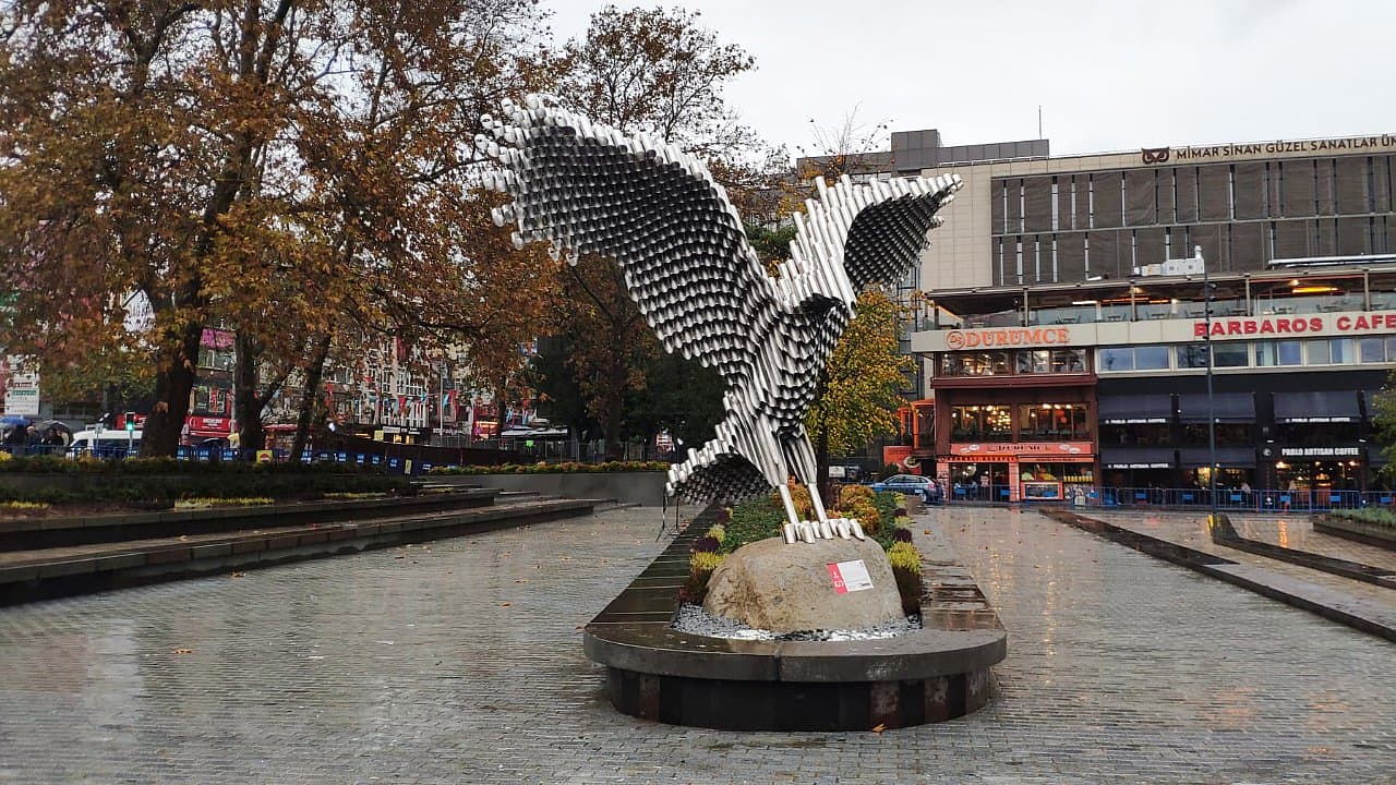 İstanbul Büyükşehir Belediyesi’nin (İBB) birinci etabını tamamladığı "Beşiktaş Meydanı"na Cumhuriyet'in 100. yılı dolayısıyla ve Beşiktaş Jimnastik Kulübü’nün 120. yılı anısına bir de "Kartal heykeli" dikildi.Beşiktaş Meydanı, yıllar içerisinde ortaya çıkan kentsel donatı yoğunluğu, düzensizliği, yeşil alanların yok olması, kamusal alan işgalleri gibi nedenlerle işlevselliğini yitirdi. İstanbul halkının deniz ile ilişkisini sağlamak, yoğun deniz ulaşımına da bağlı yaya trafiğini meydan ile beraber düzenlemek ve yeşil alan oranının artırılması amacıyla bir düzenleme yapılması kaçınılmaz bir hal aldı. İBB tarafından hazırlanan 2 etaplı projede, bölgenin yoğun olan yaya ve araç trafiğini düzenleyecek köklü ulaşım çözümleri öngörüldü. Projede 1. etabın sonuna gelinirken, Cumhuriyet'in 100. yılı dolayısıyla ve Beşiktaş Jimnastik Kulübü’nün 120. yılı anısına meydan kartal heykeli ile taçlandırıldı. 100. YILA YAKIŞIR HEYKELMimar Sinan Güzel Sanatlar Üniversitesi Heykel Bölümü Başkanı Prof. Bülent Çınar tarafından 2,5 aylık bir çalışma sonucunda tamamlanan heykel, 100. yıllık çağdaş Türkiye’nin dinamik yapısını çağrıştıracak şekilde tasarlandı. Heykel, yaklaşık 400 metre 316 kalite paslanmaz çelik boru, lazer kesim teknolojisi ile kesildikten sonra 923 adet boru, lazer kaynağı ile bir araya getirildi. Toplam ağırlığı bin 400 kilogram olan heykel yine meydanı kaplayan granitler ile aynı ocaktan seçilmiş 6 bin kilogram ham granit bir kayaya sabitlendi.1. ETAP TAMAMLANDIProjenin 1. etap düzenlemeleri kapsamında Barbaros Bulvarı ile sahil yolunu bağlayan çelik köprü yol kaldırıldı. Toplu taşıma araçları hareket noktası, sahil tarafından Beşiktaş Caddesi’nin kuzeyine alındı. Bu sayede Beşiktaş iskelesi önünde bulunan toplu taşıma araçlarının, kamusal alanda oluşturduğu hasar ve yaya hareketi ile kent deniz ilişkisinde yarattığı olumsuz etki ortadan kaldırıldı.Bölgenin hayli yoğun olan yaya ve araç trafiğini düzenleyecek köklü ulaşım çözümleri öngören projenin ana hedefleri ise şöyle:"Meydanların (Barbaros Hayrettin Paşa Meydanı, Beşiktaş Meydanı) ayrı ayrı ve aynı zamanda, ilişkili olarak düzenlenmesi,Yaya sirkülasyonunun düzenlenmesi,Proje alanında bulunan mevcut ağaçların korunması ve bakımının yapılması,Proje alanında bulunan anıtsal yapıların (Sinan Paşa Camii, Neccarzade Mustafa Rızaettin Türbesi, Barbaros Hayrettin Paşa Türbesi, Barbaros Hayrettin Paşa Anıtı, Beşiktaş İskelesi, Barbaros Hayrettin Paşa İskelesi, Deniz Müzesi, Demokrasi Anıtı) imaj öğesi olarak meydanlarla desteklenmesi-bütünleştirilmesi,Meydanların akılda kalıcılığının sağlanması,Barbaros Hayrettin Paşa Türbesi ve Barbaros Hayrettin Paşa Anıtı çevresinde sanat unsurunu vurgulayan ve güçlendiren meydan oluşturmak,Kullanıcıların sosyalleşmesini sağlamak üzere dinlenme ve bir araya gelebilmeye imkân veren mekânsal organizasyonları tanımlamak,Sürdürülebilir bir kullanım sağlamak, yaya-taşıt ilişkisini sağlıklı bir biçimde işlevsel olarak düzenlemek."