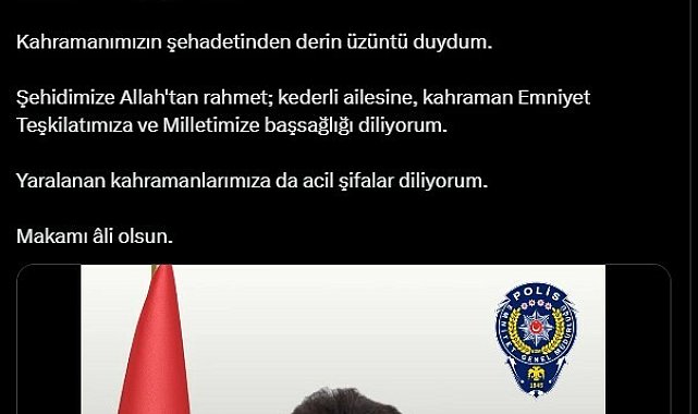 (ANKARA)- İçişleri Bakanı Ali Yerlikaya, Konya Karatay İlçe Emniyet Müdürlüğüne bağlı polis ekiplerinin devriye görevini yerine getirdiği esnada meydana gelen trafik kazasında Polis Memuru Onur Şirin’in olay yerinde şehit olduğunu, aynı ekipte bulunan Polis Memurları Hüseyin Sağlam ve Oğuz Demirkır’in ise ağır yaralandığını açıkladı.İçişleri Bakanı Ali Yerlikaya sosyal medya hesabından yaptığı açıklamada Konya Karatay İlçe Emniyet Müdürlüğüne bağlı polis ekiplerinin devriye görevini yerine getirdiği esnada meydana gelen trafik kazasında Polis Memuru Onur Şirin’in olay yerinde şehit olduğunu, ekipte bulunan Polis Memurları Hüseyin Sağlam ve Oğuz Demirkır’ın ise ağır yaralandığını belirtti. Yarlikaya açıklamasında şu ifadeleri kullandı:"Milletimizin başı sağ olsun Konya Karatay İlçe Emniyet Müdürlüğüne bağlı polis ekiplerimizin devriye görevini yerine getirdiği esnada meydana gelen trafik kazasında Polis Memurumuz Onur Şirin olay yerinde şehit oldu. Aynı ekipte bulunan Polis Memurlarımız Hüseyin Sağlam ve Oğuz Demirkır ise ağır yaralandı. Kahramanımızın şehadetinden derin üzüntü duydum. Şehidimize Allah'tan rahmet; kederli ailesine, kahraman Emniyet Teşkilatımıza ve Milletimize başsağlığı diliyorum. Yaralanan kahramanlarımıza da acil şifalar diliyorum. Makamı âli olsun."