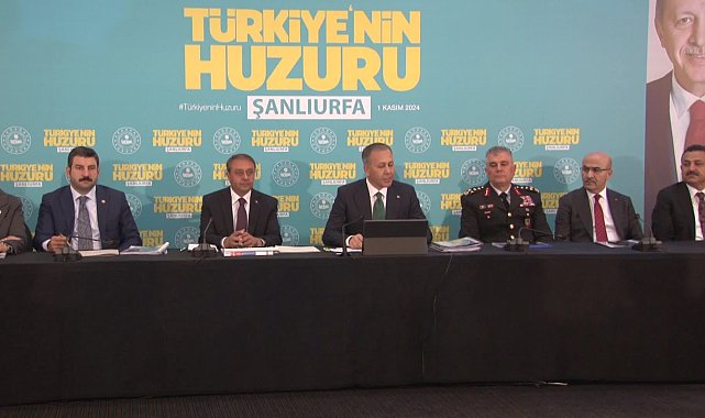 İçişleri Bakanı Ali Yerlikaya Şanlıurfa’da Güvenlik ve Asayiş Toplantısına katıldı. Toplantıya İçişleri Bakanı Ali Yerlikaya’nın yanı sıra Emniyet Genel Müdürü Mahmut Demirtaş, Jandarma Genel Komutanı Orgeneral Ali Çardakçı, Göç İşleri Başkanı Atilla Toros, Şanlıurfa Valisi Hasan Şıldak, İl Emniyet Müdürü Erdem Bildirici, İl Jandarma Komutanı Tuğgeneral Mücahit Avkıran ve kaymakamlar katıldı. Toplantı sonrası açıklama yapan Bakan Yerlikaya, şunları söyledi:
