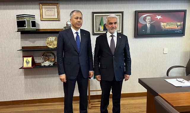 İçişleri Bakanı Ali Yerlikaya, HÜDA PAR Genel Başkanı Zekeriya Yapıcıoğlu’nu TBMM'deki makam odasında ziyaret etti.HÜDA PAR'ın resmi sosyal medya hesabından, İçişleri Bakanı Ali Yerlikaya'nın parti Genel Başkanı Zekeriya Yapıcıoğlu’nu TBMM'deki makam odasında ziyaret ettiği duyuruldu. HÜDA PAR'dan yapılan paylaşım şöyle:"İçişleri Bakanı Sayın Ali Yerlikaya, Genel Başkanımız Sayın Zekeriya Yapıcıoğlu’nu TBMM’deki makam odasında nezaket ziyaretinde bulundular."
