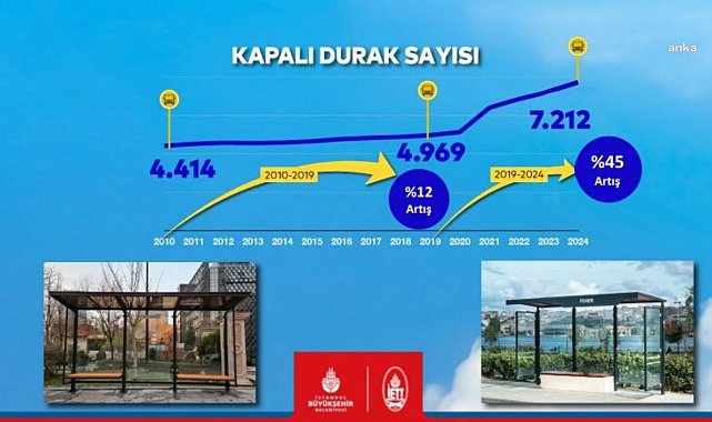 (İSTANBUL)- Dünyanın en büyük ikinci toplu ulaşım kurumu olan İETT, İstanbulluların duraklardaki konforunu artırabilmek amacıyla kent genelindeki kapalı durak sayısını yüzde 45 oranında artırdı. İstanbul Büyükşehir Belediyesi'nin (İBB) açıklamasına göre, İBB'nin bağlı kuruluşu İETT Genel Müdürlüğü, otobüs ve metrobüs filosu ve garajları için yatırımlarını hızla artırırken, hem çevre sağlığı hem de ulaşımın her aşamasındaki konforu artırabilmek için de çalışmalarını sürdürüyor. Bu kapsamda, özellikle yağışlı dönemler ve sıcak yaz günlerinde yolcuların duraklarda iklim şartlarından minimum düzeyde etkilenmeleri için kapalı durak sayısını artırıyor. Yapılan çalışmalar ile 2019 yılında 4 bin 969 olan kapalı durak sayısı yüzde 45 oranında artırılarak 7 bin 212 adede ulaştırıldı. Böylece, İstanbulluların toplu ulaşım konforu, otobüs dışında da artırılmış oldu. Kapalı durak sayısı 2010-2019 döneminde ise yüzde 12 oranında artırılmıştı. İETT, kent merkezindeki tüm durakları kapalı ve akıllı duraklarla yenilemeyi hedefliyor.