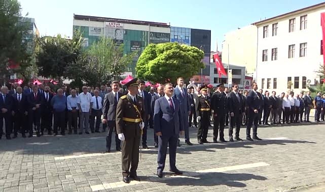 SERDAR ÜNSAL30 Ağustos Zafer Bayramı'nın 101. yıl dönümü tüm yurtta olduğu gibi Iğdır'da da büyük bir coşkuyla kutlandı. Zübeyde Hanım Bulvarı'nda bulunan Belediye önündeki Atatürk Anıtı’na çelenk konulmasıyla başlayan tören, saygı duruşu ve İstiklal Marşı’nın okunması devam etti.Iğdır Zübeyde Hanım Bulvarı'nda 30 Ağustos Zafer Bayramı kutlaması yapıldı. Atatürk Anıtı'na çelenk konulmasının ardından Vali Ercan Turan ve 5. Hudut Alay Komutanı P. Albay Cavit Tütüncü Valilik binasında protokolün tebriklerini kabul etti.Tebrik sonrası belediye meydanında düzenlenen programda günün anlam ve önemini belirten konuşmalar yapıldı, şiirler okundu. 30 Ağustos Zafer Bayramı etkinlikleri Gençlik ve Spor müdürlüğü karate boks ekiplerinin ve folklor gösterisi ve tören geçişi ile son buldu. Vatandaşların büyük ilgi gösterdiği bayramda belediye zabıta ekipleri Türk bayrağı dağıttı.Iğdır’a yeni atanan Vali Ercan Turan, ve 5. Hudut Alay Komutanı P. Albay Cavit Tütüncü ilk bayram kutlamasını yaptılar.