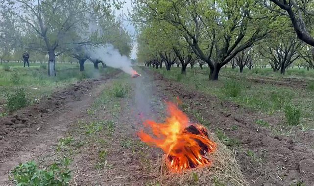 (IĞDIR)- Iğdır'da kayısı üreticileri, birkaç gecedir yaşanan zirai dona karşı yeni çiçek açan ağaçların ve çağlaların zarar görmesini önlemek için bahçelerinde ateş yakıyor.