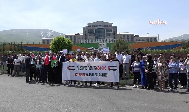 (IĞDIR) -Iğdır Üniversitesi öğrenci toplulukları, Amerika Birleşik Devletleri’nde (ABD) İsrail’in Gazze’ye yönelik saldırılarını protesto eden öğrencilere destek verdi. Öğrenci toplulukları, gösterilerde orantısız güç uygulanmasını protesto etti.