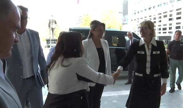 İngiltere Büyükelçisi Jill Morris, Antalya Büyükşehir Belediye Başkanı Muhittin Böcek’i ziyaret etti. Türkiye ile İngiltere arasındaki ilişkilerin ele alındığı görüşmede başta turizm, tarım ve ticaret olmak üzere her alandaki işbirliğinin daha da ileri seviyeye taşınması noktasında yapılabilecekler ele alındı. Antalya Büyükşehir Belediye Başkanı Muhittin Böcek, Antalya’yı ziyaret eden İngiltere Büyükelçisi Jill Morris’i makamında ağırladı. Büyükelçi Morris’in ziyaretinde Antalya Büyükşehir Belediyesi Genel Sekreteri Cansel Tuncer, Genel Sekreter Yardımcısı Mustafa Gürbüz ile Başkan Danışmanları Osman Ayık ve Lokman Atasoy da hazır bulundu. BAŞKAN BÖCEK, ANTALYA HAKKINDA BİLGİ VERDİHer türlü ticari ve ekonomik iş birliğine hazır olduklarını dile getiren Başkan Muhittin Böcek, Büyükelçi Morris’e Antalya’nın tarım ve turizm potansiyeli hakkında bilgi verdi. Antalya’da deniz, kum ve güneşin yanı sıra turistlere yönelik sağlık turizminin de ön planda olduğunu söyleyen Başkan Muhittin Böcek, “Antalya’da turizmin yanı sıra verimli topraklar vardır. Tarım da en önemli sektörümüzdür. Türkiye’nin sebze, meyve ihtiyacının yüzde 50’si Antalya’dan karşılanmaktadır. Antalya Büyükşehir Belediyesi olarak üreticilere elektrik enerjilerinin yüze 85’ini ödüyoruz. Tohum, fide, fidan desteği sağlıyoruz. İngiltere’den kentimize gelen turist sayısının artmasını isteriz” dedi.İNGİLİZ HALKI ANTALYA’DA ÇOK MUTLUTürkiye’de ve Antalya’da olmaktan mutluluk duyduğunu belirten İngiliz Büyükelçi Morris de İngiliz halkının Antalya’da çok mutlu olduğunu ve burayı çok sevdiğini belirtti. Büyükelçi Morris, “İngiliz vatandaşlarımıza göstermiş olduğunuz yakın ev sahipliği için teşekkür etmek istiyorum. Antalya’da o kadar mutlular ve o kadar entegre olmuşlar ki hiçbir şikayet ya da olumsuz dönüş almıyoruz” diye konuştu. ÇEVRE PROJELERİ ANLATILDIAntalya Büyükşehir Belediyesi’nin çevre ile ilgili projelerini merak eden Büyükelçi Morris’e Antalya Büyükşehir Belediyesi Başkan Danışmanı Lokman Atasoy belediyenin bu alanda yaptığı çalışmalar hakkında bilgi verdi.
