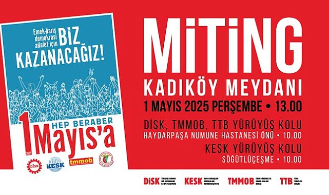 (İSTANBUL) - İstanbul’da DİSK, KESK, TMMOB, TTB, siyasi partiler, sendikalar ve dernekler 1 Mayıs Emek ve Dayanışma Günü'nü Kadıköy'de, Türk-İş ise Kartal Meydanı'nda düzenlenecek mitinglerle kutlayacak.İstanbul’da DİSK, KESK, TMMOB ve TTB 1 Mayıs kutlamasının Kadıköy'de yapılacağını bildirdi. Kadıköy Meydanı’nda saat 13.30’da yapılacak mitinge farklı noktalardan saat 11.00’da yürüyüşe geçilecek.Her 1 Mayıs'ta merkezi kutlamasını başka bir kentte yapan Türk-İş, bu yılki buluşmasını İstanbul'daki Kartal Meydanı'nda gerçekleştirecek.Bazı sosyalist partiler, sendikalar ve gençlik grupları ise Taksim Meydanı'na yürüyüş çağrısında bulundu.
