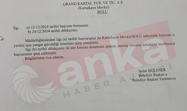 Haber: Ogün AKKAYA(BOLU) - Bolu Belediyesi İtfaiye Müdürlüğü yangından yaklaşık 1 ay önce talep üzerine Grand Kartal Otel'de yapılan inceleme ve denetleme sonucunda tahliye çıkışlarının, ışık yönlendirme levhalarının, binadaki acil aydınlatmanın yetersiz olduğu tespit etti. Söndürme gereçleri talimatlarının, algılama sistemleri, yangın alarmı, duman havalandırma ve tahliyenin yetersiz olduğunun belirlenmesi üzerine Otel, 24 Aralık günü denetim talebini geri çekti.Bolu Kartalkaya Kayak Merkezi'ndeki 12 katlı Grand Kartal Otel'de dün gece saat 03.30 sıralarında çıkan yangın faciaya dönüştü. Sömestr tatili nedeniyle 238 kişinin konakladığı otelde 76 kişinin hayatını kaybetti, 51 kişi yaralandı. Yangının ilk çıktığı andan itibaren ihmaller gündeme geldi.Bolu Belediyesi ile Kültür ve Turizm Bakanlığı arasında yetkinin kimde olduğu tartışması yaşanmış, Bolu Belediye Başkanı Tanju Özcan, bölgenin belediye sınırları içinde olmaması nedeniyle ancak talep gelmesi üzerine Belediyenin denetim yapabileceğine işaret etmişti.ANKA Haber Ajansı’nın ulaştığı belgelere göre Otel, 12 Aralık 2024 günü Belediyeden denetim talep etti. Bunun üzerine Bolu Belediyesi İtfaiye Müdürlüğü'nün inceleme ve denetlemelerde bulundu. 16 Aralık 2024 günü denetim üzerine hazırlanan formda 19 konu başlığının 8’inde tesisin yangın yönünden yetersiz olunduğuna dair tespitler yer aldı.Buna göre Bolu Belediyesi İtfaiye Müdürlüğü, tahliye çıkışları, ışıklı yönlendirme levhaları, binada acil aydınlatma, elektrik tesisatı uygunluğu, söndürme gereçleri talimatları, algılama sistemleri ve yangın alarmı, paratoner ve duman kontrolü (duman havalandırma ve tahliye) başlıklarında yetersizlik olduğunu tespit etti. Yeterli olunan tek konunun ise elektrik tesisatı olduğu belirtildi.Belediye tarafından hazırlanan rapor sonrasında 24 Aralık 2024 tarihinde otel yetkilileri tarafından belediyeye dilekçe yazılarak ilgili raporun iptal edilmesi talebinde bulunulduğu da ortaya çıktı.
