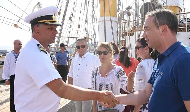 İtalya'dan yola çıkan 82 metre uzunluğunda, 12 metre genişliğindeki 'Nava Scoala Mircea' isimli gemi, sabah saatlerinde İzmir Limanı'na demirledi. Romanya'nın İzmir Başkonsolosu Mioara Stefan ve konsolosluk yetkilileri, Torbalı Belediyesi Bandosu eşliğinde gemiyi karşıladı. İstiklal Marşı ile Romanya Milli Marşı'nın okunmasının ardından gemi davetlilerin ziyaretine açıldı.Romanya İzmir Başkonsolosluğu Mioara Stefan ev sahipliğinde gerçekleşen resmi törene Dışişleri Bakanlığı İzmir Temsilcisi Büyükelçi Naciye Gökçen Kaya, İzmir Vali Yardımcısı Hulusi Doğan, Torbalı Belediye Başkan Yardımcısı Çağlar Albayrak ve Torbalı Belediye Başkan Yardımcısı Serkan Tekin de katıldı.TEKİN: BELEDİYE BANDOMUZA GELEN DAVET BİZLERİ ONURLANDIRDIDünyada sadece 5 adet bulunan askeri eğitim gemisinde ikisi Türk 74 öğrencinin yanı sıra toplamda 174 kişi yer alıyor. İzmir'e gelen gemi, 27 Temmuz'a kadar limanda olacak. Gemi, belirli saatlerde halkın ziyaretine açılacak.Torbalı Belediye Bandosu’nun bu özel törene davet edilmiş olmasından dolayı mutlu olduklarını ifade eden Torbalı Belediye Başkanı Mithat Tekin, “Romanya İzmir Başkonsolosluğu’ndan belediye bandomuza gelen davet bizleri onurlandırdı. Birbirinden yetenekli isimlerin görev aldığı, İzmir’in sayılı bandoları arasında yer alan belediye bandomuz hem Romanya milli marşını hem de İstiklal Marşı’mızı büyük bir coşkuyla çaldı. İlçe sınırlarını aşan, zaman zaman il genelinde benzer etkinliklerde yer alan bandomuz, ilçemizi böylesi önemli törenlerde temsil etmeye devam edecek” dedi.