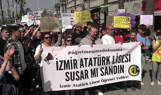 Bizler, eğitimin siyasi amaçlarla değil; adalet, bilim ve çocuklarımızın yüksek yararı temel alınarak yürütülmesi gerektiğine inanıyoruz. Bu inançla, çocuklarımızın geleceği için sesimizi yükseltiyor, 'Öğretmenime dokunma' diyoruz.”“Buna, Türkiye genelinde sürdürülen bir kampanya olarak bakınız”Dijital imza kampanyasının devam ettiğini ifade eden Dinç, destek çağrısında bulunarak “Buna, Türkiye genelinde sürdürülen bir kampanya olarak bakınız. Bütün Türkiye’den internet üzerinden sürdürülen kampanyaya destek olunmasını rica ediyoruz” diye konuştu.Aslanoğlu: “Atatürk Lisesi’nin köklü bir mirasına yapılan bir saldırıdır”Atatürk Lisesi mezunu CHP İzmir İl Başkanı Aslanoğlu, yapılan atamaya ilişkin, “İzmir'in en önemli değerlerinden bir tanesi İzmir Atatürk Lisesi. Ben de bu lisenin bir mezunu olarak, bu lisenin öğrencisi olarak bugün öğrenci kardeşlerimle ve velilerimizle birlikte bu haksız hukuksuz uygulamaya karşı çıkıyoruz. Öğrencilerin, alıştıkları öğretmenlerden bir proje adı altında uydurdukları bir şeyle birbirlerinden ayrılmalarına karşı çıkıyoruz. Atatürk Lisesi’nin köklü bir mirasına yapılan bir saldırı olarak görüyoruz bunu. Tabi sadece Atatürk lisesine değil İzmir'in bir çok değerli kurumuna yapılan bir saldırıdır. O yüzden öğrencilerimizin ve velilerimizin söylediği gibi öğretmenlere dokunulmamasını öğretmenlerinin yerlerinde kalmasını arzuluyoruz” ifadelerini kullandı.“Her biri bize bir demokrasi dersi veriyorlar”Öğrencilerin öğretmenleri için ortaya koydukları tepkileri de değerlendiren Aslanoğlu, “Hem lise öğrencilerimiz hem üniversite öğrencilerimiz hem üniversitelerinden mezun olmuş öğrencilerimizin her biri bize bir demokrasi dersi veriyorlar. Bu ülkeye sahip çıktıklarını bu ülkeyi bırakmadıklarını bu ülkenin geleceğinin onların olduğunu ve büyüklere de bir ders vererek herkesin ülkesini ve demokrasisine sahip çıkması gerektiğini söylüyorlar” dedi.Öğrenciler eylemlerine bugün de devam ettiÖte yandan; öğrenciler, atama kararının ardından başlattıkları oturma eylemini bugün de devam ettirmişlerdi. Eylem kapsamında bugün öğrenciler okul bahçesinde şemsiyeli oturma eylemi yapmışlardı.
