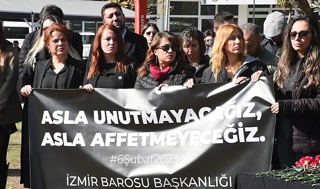İzmir Barosu, 6 Şubat 2023 tarihinde Kahramanmaraş merkezli depremlerde hayatını kaybeden meslektaşlarını ve yurttaşları andı. İzmir Barosu Başkanı Sefa Yılmaz, “Aradan geçen bir yılda hiçbir yara sarılmadığı gibi soruşturmalardaki ve yargılamalardaki adaletsizlikler acıları daha da arttırdı. Adalet istiyoruz. Cezasızlık politikaları son bulsun, caydırıcı cezalar gelsin istiyoruz. Daha fazla ölüm olmasın, binalar canlarımızı almasın istiyoruz. Bizi saran sorumsuzluğun, kayıtsızlığın bir parçası olmayı reddediyoruz” dedi.