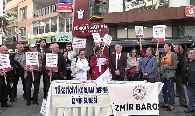 İzmir Barosu Başkanı Yılmaz: Tüketici de tükenmek üzereBasın açıklamasının ardından söz alan İzmir Barosu Başkanı Sefa Yılmaz ise "Bu ülkede her şey tüketiliyor. Tüketici de sonu da tükenmek üzere. Yaşam hakkına dair birçok alanda adaletsizliğin artık ne yazık ki son safhaya geldiği en dayanılmaz noktalara kadar devam ettiği bir süreci yaşıyoruz. Bu süreç gerek sağlık, gerek eğitim, gerek temel ihtiyaçlara ulaşma ve gerekse hukuk. Bunun üzerinden yürütülen bir çalışma var. Çok sistemli bir çalışma var. Zaten hep söylüyoruz. Bir ülkede üç alanı yok ederseniz hukuk, sağlık ve eğitim bunları yok ederseniz o ülkeyi sonuna kadar çıkmaza sokarsınız ve sonuçlarını da yok etme olarak görürsünüz" ifadelerini kullandı.