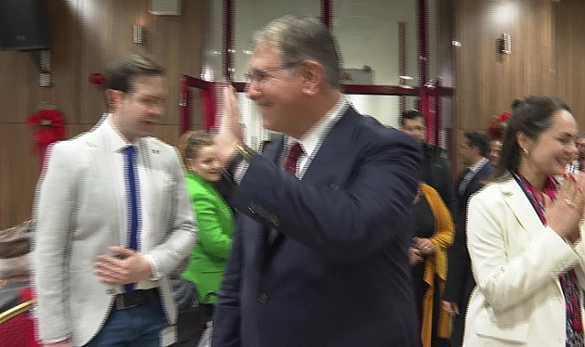 Yeni yıl yemeğinde 51’inci evlilik yıl dönümünü kutlayan Canan ve Ömer Bircan çiftine sürpriz yapıldı. Çifti tebrik eden Başkan Tugay, “Bugün masamızı evliliklerinin 51’inci yılını kutlayan büyüklerimizle birlikte paylaşıyoruz. Onları da tebrik ediyorum” dedi. Sahneye gelerek eşi Canan Bircan’a çiçek hediye eden Ömer Bircan, “Acılar paylaşıldıkça azalır, sevgiler çoğalır. Ben sevgili eşimle 51 yıllık evliliğimde acı tatlı günlerimizde bir kusur işlediysem özür diliyorum. Kendisini çok seviyorum, benim nefes alma vesilem. Hepinize bu mutluluğu bizimle paylaştığınız için teşekkür ediyorum” dedi.2025’e neşe dolu karşılamaKonuşmanın ardından huzurevi sakini Semra Dinçer, tüm huzurevi sakinleri adına Başkan Tugay’a çiçek ve hediye takdim etti. Etkinlikte Başkan Tugay, huzurevi sakinleriyle yeni yıl pastası kesti. Pasta kesilnesinin ardından hep bir ağızdan Onuncu Yıl Marşı söylendi. İzmir Büyükşehir Belediyesi Türk Halk Müziği Orkestrası halk müziği ezgilerini seslendirdi. Gönüllerince eğlenen huzurevi sakinlerine Başkan Tugay ve eşi Öznur Tugay sahneye çıkarak eşlik etti.