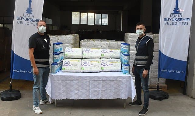 Sosyal belediyecilik çalışmaları ile Türkiye’ye örnek olan İzmir Büyükşehir Belediyesi, gıdadan süte, giysiden sıcak yemeğe, tabletten kitap desteğine kadar ihtiyaç sahiplerinin yanında olmaya devam ediyor. Büyükşehir, bebeği olan ailelere ücretsiz bebek bezi ve mama desteği de sağlıyor. Kentte 2019 yılından itibaren yurttaşlara 100 binin üzerinde bez ve mama ulaştırıldı.