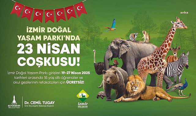 (İZMİR) - İzmir Büyükşehir Belediyesi, 23 Nisan Ulusal Egemenlik ve Çocuk Bayramı kutlamaları dolayısıyla 27 Nisan’a kadar 18 yaş altı öğrenciler ve okul gezilerinin refakatçileri için Doğal Yaşam Parkı’na girişleri ücretsiz yaptı.İzmir’de 23 Nisan Ulusal Egemenlik ve Çocuk Bayramı Haftası, Büyükşehir Belediyesi’nin düzenlediği etkinlikler ile coşkuyla kutlanıyor. 0-6 yaş arasındaki çocukların ücretsiz şekilde girebildiği Doğal Yaşam Parkı, 27 Nisan’a kadar 18 yaş altı çocuklar için de ücretsiz oldu. Öğrenciler ve okul grupları ile düzenlenen gezilerde, öğrencilere eşlik eden öğretmen, rehber ve görevliler de parka ücretsiz olarak girebilecek.