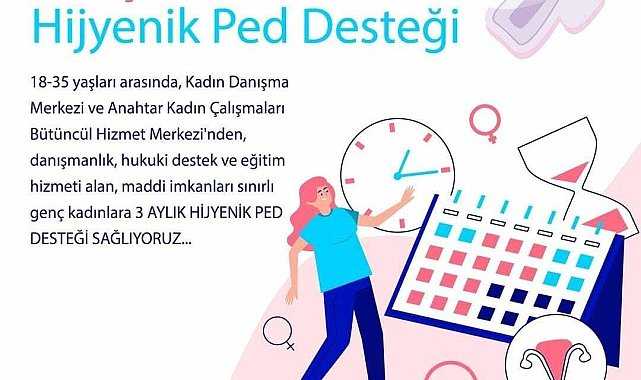 (İZMİR)- İzmir Büyükşehir Belediyesi, Kadın Danışma Merkezi ve Anahtar Bütüncül Hizmet Merkezi'nden hizmet alan maddi imkanları sınırlı genç kadınlara 3 aylık hijyenik ped desteği sağlıyor. Proje kapsamında, vatandaşlar da 'Askıda Ped' uygulamasına katılarak hijyenik ürünlere erişemeyen kadınlara destek olabiliyor.İzmir Büyükşehir Belediyesi Kadın Çalışmaları Şube Müdürlüğü bünyesindeki Kadın Danışma Merkezi ve Anahtar Bütüncül Hizmet Merkezi'nden danışmanlık, hukuki destek ve eğitim hizmeti alan 18-35 yaşları arasında ve maddi imkanları sınırlı genç kadınlara 3 aylık hijyenik ped desteği sağlanıyor. Hayata Destek Derneği ve Beije markası iş birliğiyle yapılan proje kapsamında kadınlar, 3 aylık özel destek paketlerine kadın danışma merkezlerinden ücretsiz olarak ulaşabiliyor.Askıda Ped uygulaması