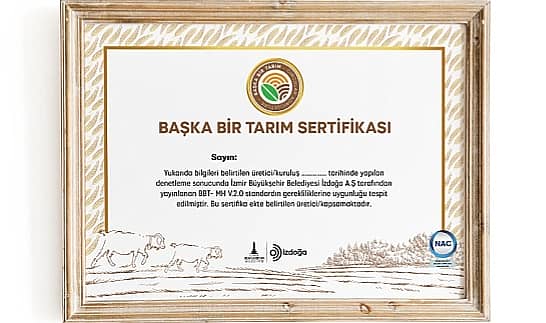 İzmir Büyükşehir Belediye Başkanı Tunç Soyer’in kuraklık ve yoksullukla mücadele üzerine temellenen “Başka Bir Tarım Mümkün” vizyonu doğrultusunda çalışmalar sürüyor. Büyükşehir Belediyesi şirketi İzDoğa’nın hazırladığı Başka Bir Tarım Sertifikası programı, uluslararası alanda geçerlilik kazandı. Program, döngüsel ve doğa ile uyumlu tarım için dünyadaki ilk sertifikasyon sistemlerinden biri kabul ediliyor. İzmir Büyükşehir Belediyesi şirketi İzDoğa’nın hazırladığı Başka Bir Tarım Sertifikası programı, uluslararası alanda geçerlilik kazandı. Bu sertifika ile İzDoğa, mera hayvancılığı alanında uluslararası kriterlere göre değerlendirme yapacak. Asya Pasifik Akreditasyonu’nun (APAC) yetkili kuruluşu olan Ulusal Akreditasyon Merkezi’nin (NAC) akredite ettiği İzDoğa, üreticilere uluslararası alanda geçerlilik kazanan Başka Bir Tarım Sertifikası vermeye başladı. Sertifikayı doğa ile uyumlu yöntemlerle tarım ve hayvancılık yapan üreticiler alabilecek. Sertifikasyon sistemine bağımsız üreticiler de baskabirtarim.com sitesinden başvurabilecek.Kuraklıkla mücadele etmeyi, yoksulluğu sonlandırmayı, güvenilir ve sağlıklı gıdaya erişimi kolaylaştırmayı hedefleyen Başka Bir Tarım Sertifikasyonu, döngüsel ve doğa ile uyumlu tarım için dünyadaki ilk sertifikasyon sistemlerinden biri kabul ediliyor. Başka Bir Tarım Sertifikasyon Programı ile İzDoğa, tarımın ve mera hayvancılığının geleceğine dair önemli bir uygunluk değerlendirme kuruluşu olarak hizmet verecek. Sertifika programı, tarım ve hayvancılığın yalnızca ekonomik bir faaliyet olarak sürdürülmesini değil, aynı zamanda kırla kent arasındaki dengeyi koruyan bir mekanizmanın da hayata geçirilmesini amaçlıyor.SERTİFİKA İÇİN DENETİMLER BAŞLADISertifikanın dağıtım süreci için İzDoğa çalışmalara başladı. Daha önce Mera İzmir projesi kapsamında İzmir’in tüm köyleri dolaşılarak çıkarılan Çoban Haritası’nda yer alan üreticiler ziyaret edilmeye başlandı. Tarım ve hayvancılık yapan üreticiler birçok kriter doğrultusunda sertifikaya uygunlukları için değerlendiriliyor. Yapılan denetimler sonucunda kriterlere uygun üretim yapan üreticiler sertifika almaya hak kazanıyor. İzDoğa ve İzTarım’ın birlikte yürüttüğü Mera İzmir projesi kapsamında İzmir’de yüzlerce üreticiden toplanan sütler ile İzmirli markası adı altında temiz ve güvenilir birçok ürün tüketici ile buluşturuluyor. Sertifika ilk aşamada İzTarım tarafından üretilen et ve süt ürünlerine verilecek. Başka Bir Tarım Sertifikası, tarım ve hayvancılık faaliyetlerinin çevresel, sosyal ve ekonomik sürdürülebilirliğini teşvik etmek için geliştirildi. Sertifikasyon programı kapsamında üreticilerin, tarım ve hayvancılık faaliyetlerini yaparken şu kriterleri yerine getirmesi gerekiyor:“-Yetiştirilen ürünler yetiştirildiği bölgenin mikrokliması ile uyumlu olmalı.-Yüksek su ve elektrik tüketmemeli, düşük karbon emisyonuna sahip olmalı.-Yüksek su ve elektrik kullanılarak üretilen, bulunduğu bölgenin iklim ve coğrafi koşullarına uymayan ve yüksek karbon emisyonuna neden olan harici tarımsal girdiler kullanılmamalı.-Büyük ölçekli hafriyat yapılarak ve doğal koşullar bozularak üretim yapılmamalı.-Üretimde biyolojik çeşitliliği azaltan yoğun müdahaleler yapılmamalı.-Üretim bulunduğu havzanın ve coğrafyanın doğal karakterine uygun bir bütünlük içerisinde gerçekleştirilmeli.-Üretilen ürünler üretici, tüketici ve o bölgedeki biyolojik çeşitliliğe zarar vermeyecek şekilde işlenmeli.-Üretim biçimi mümkün mertebe üretildiği bölgeye özgü arazi işleme biçimlerini içermeli.”Sertifikasyon programı başvuru formuna ve detaylı bilgiye baskabirtarim.com sitesi üzerinden ulaşılabilecek.